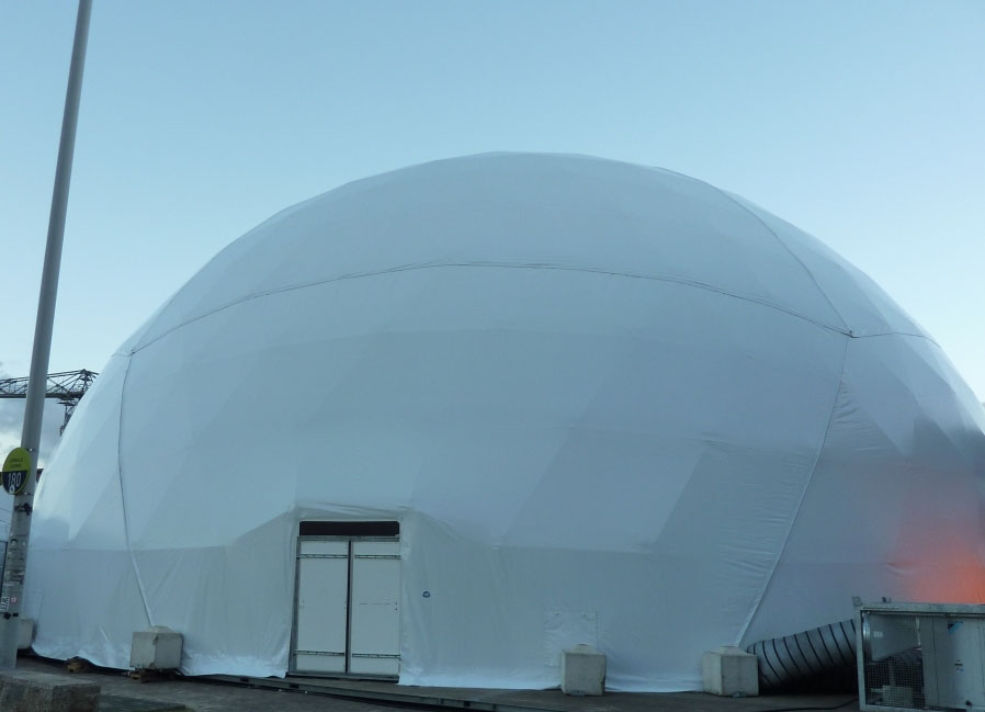 Dôme de 30 m de diamètre, 14 mètres de haut, 706 m².